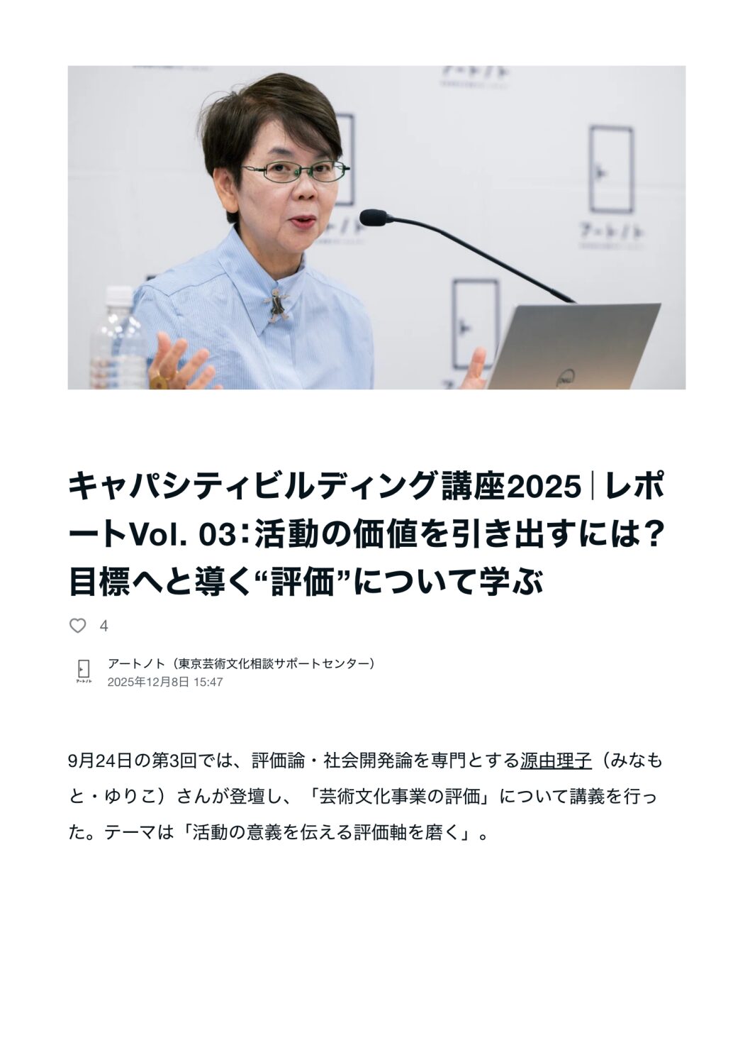 共同代表の源由理子が講師を務めた「キャパシティビルディング講座2025」(9/24)のレポートVol.03が公開されました(12/8)。